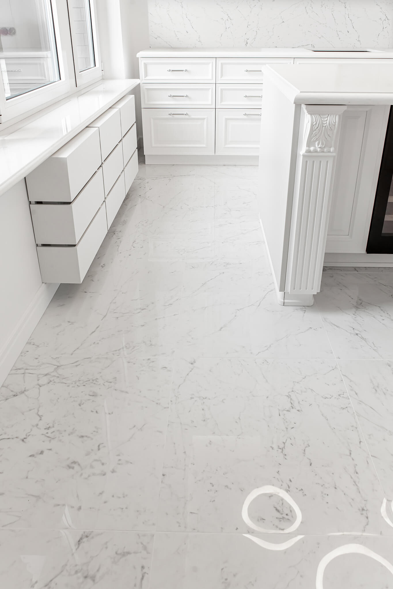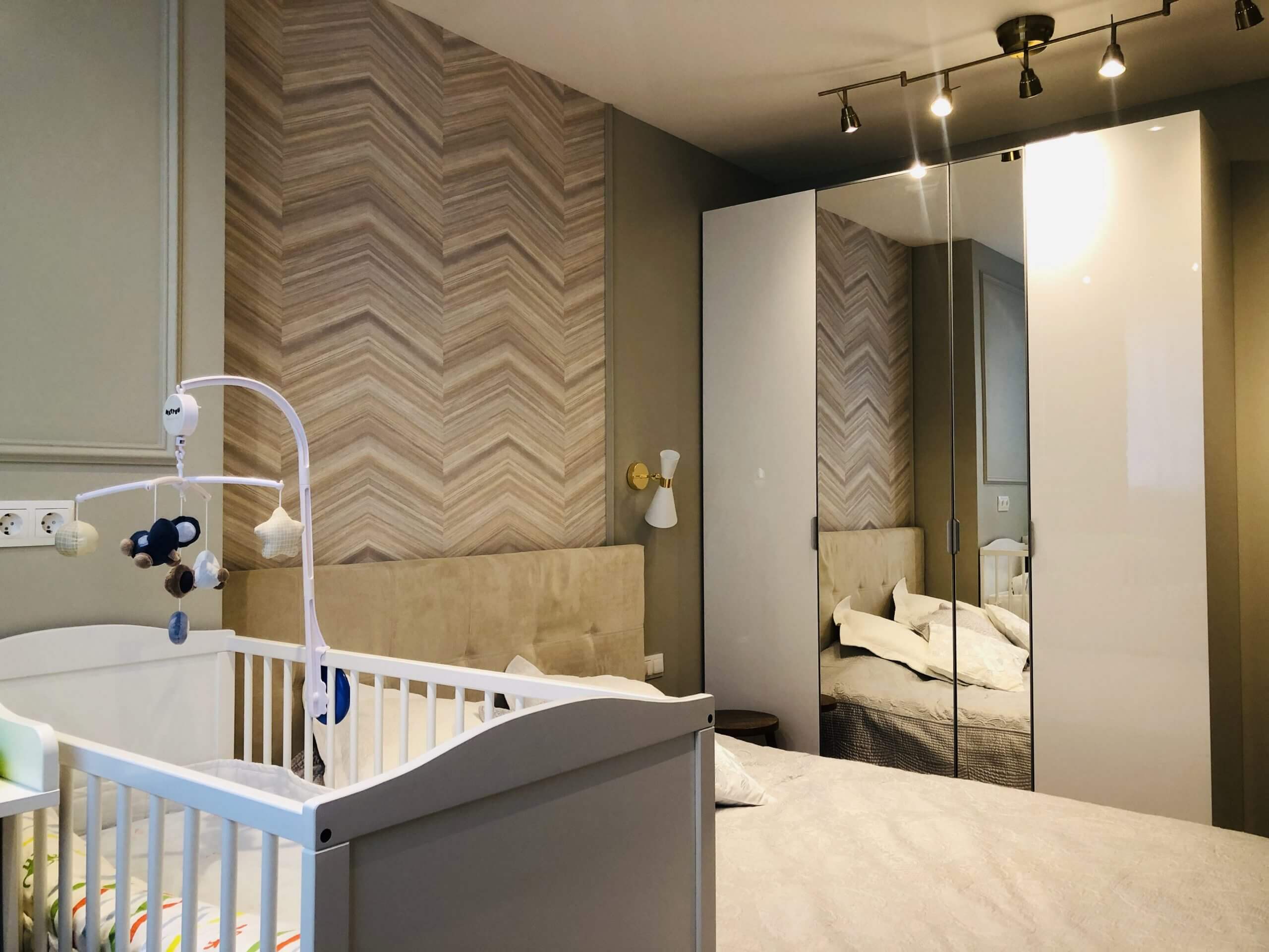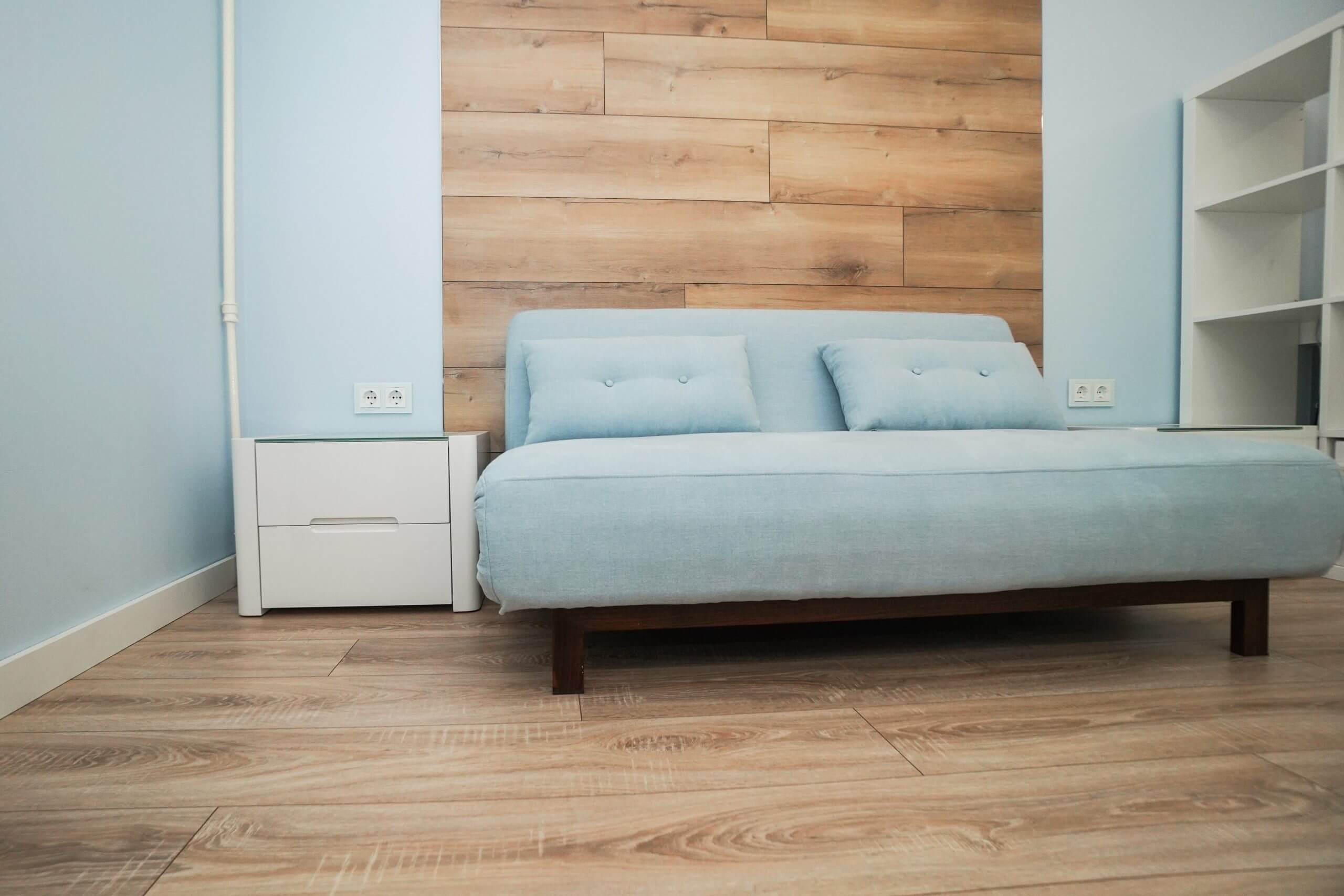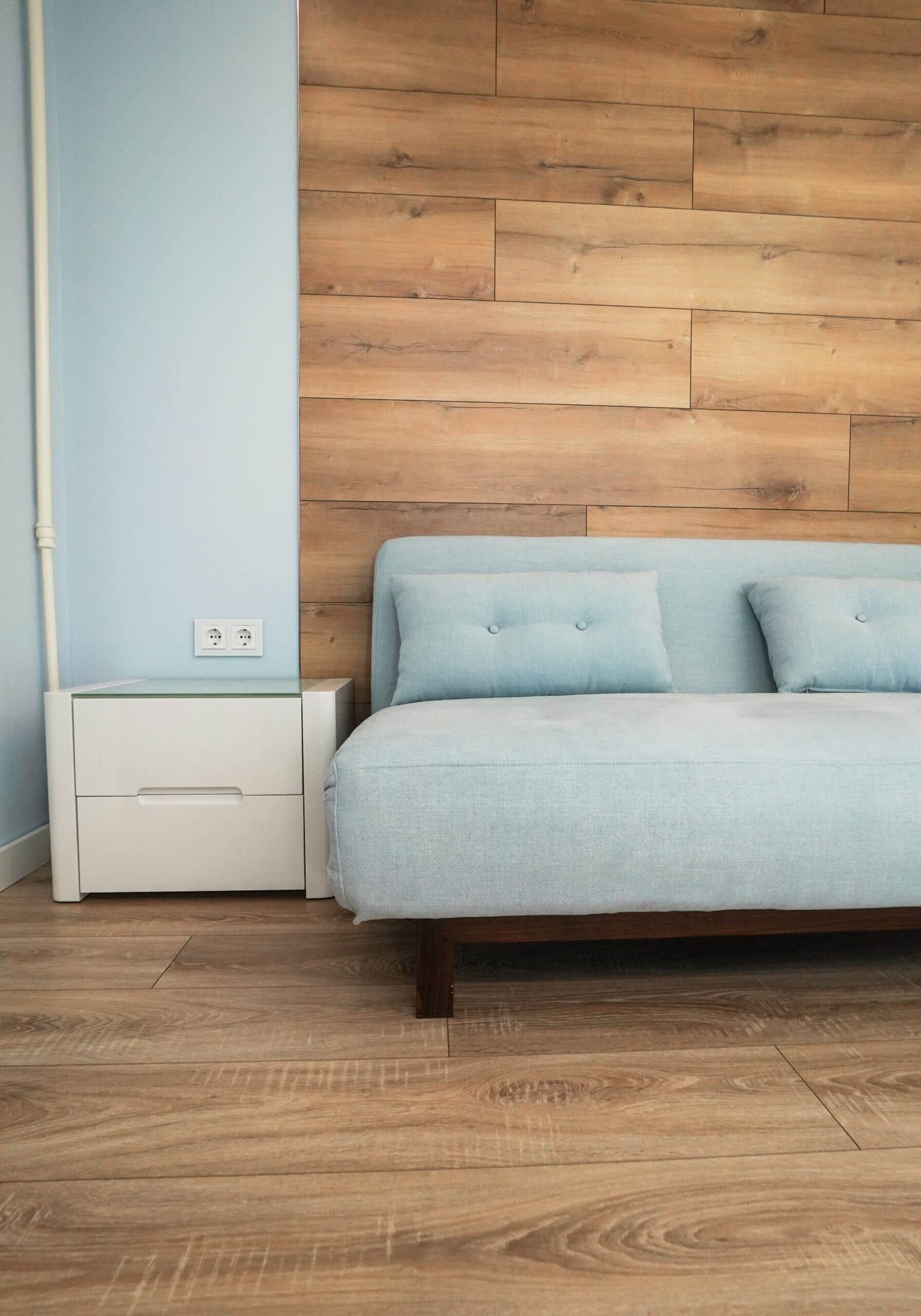 - На полу кварцвинил (укладка «елочкой»)