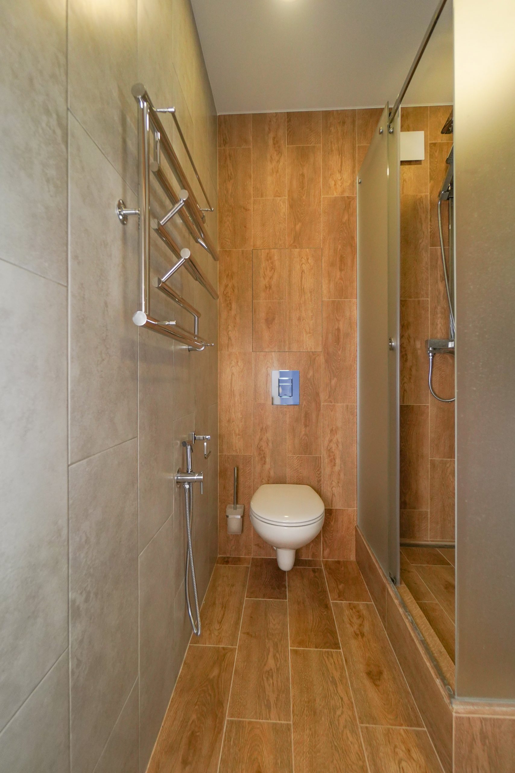 - На полу ламинат и керамогранит